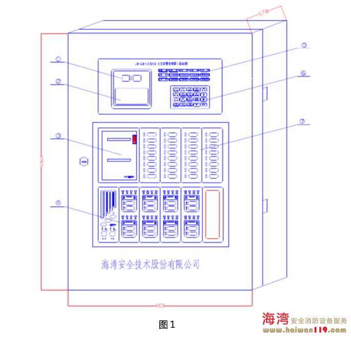 JB-QB-GST200火災報警控制器(聯(lián)動型)的外觀示意圖及內部結構圖如圖1、圖2所示: