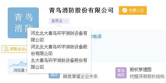 根據天眼查資料顯示,也已經顯示“青鳥消防股份有限公司”作為公司名稱。使用過如下曾用名: